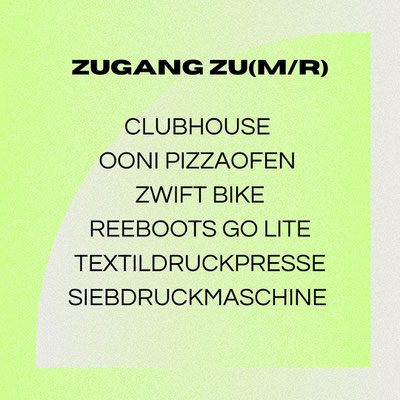 • die Möglichkeit unseren Ooni Pizzaofen, Reeboots Go Lite, Transfer-Druckpresse, Hantelbank und ZWIFT Bike zu nutzen.